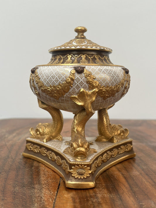 Wedgwood Queensware Gilded Dolphin Pastille Burner Bronze Gold English Porcelain