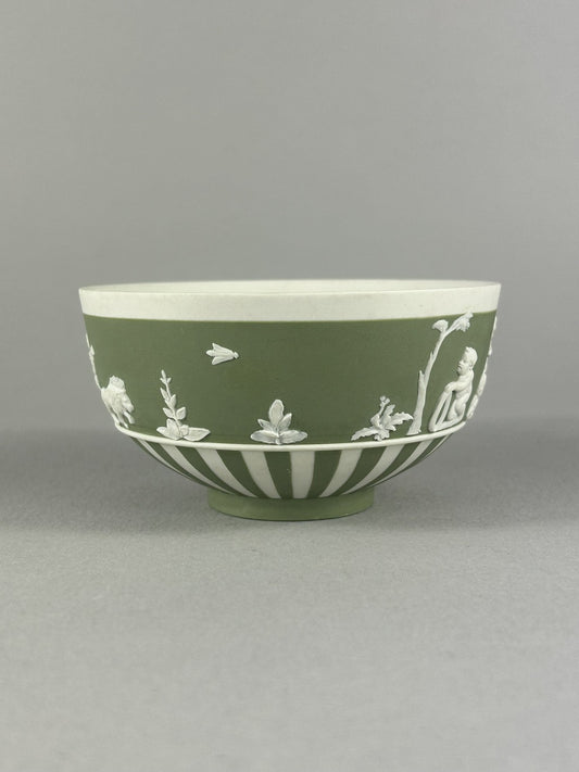 Wedgwood 1955 Green Jasperware Cherub Lion Chariot Bowl 10cm England